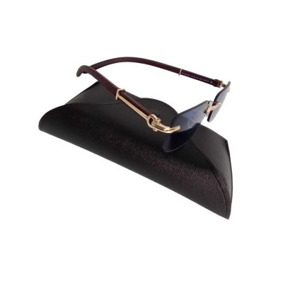 Ορθογώνια Γυαλιά Ηλίου Χωρίς Σκελετό με μπλε φακούς και ξύλινο βραχίονα με χρυσή λεπτομέρεια .